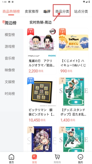 在发现页面,找到商品分类的入口并点击,就能进入到商品分类的界面啦。