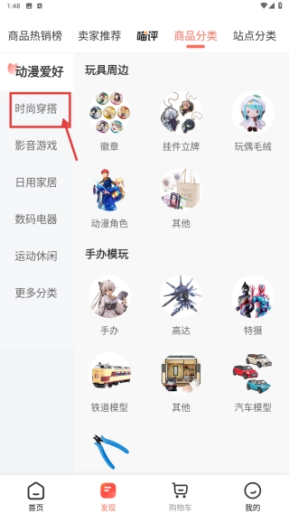在商品分类里,点击时尚穿搭栏目就能浏览对应的商品列表。