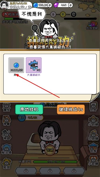 修真境界、装备进度采用魔性文字搭配卡通图标呈现,像出世二阶、六星锅碎片这类内容,通过一键满进度功能让养成目标的达成过程更清晰直观,而且每一次操作都能收获趣味十足的成长反馈。