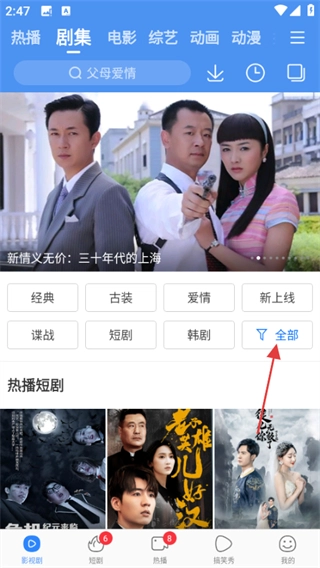 打开软件首页后,点击顶部的剧集标签,即可切换至剧集页面。