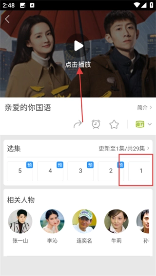 在《亲爱的你》的播放页面,先选定你想观看的集数,再点击“播放”按钮,就能开始观看剧集内容了。