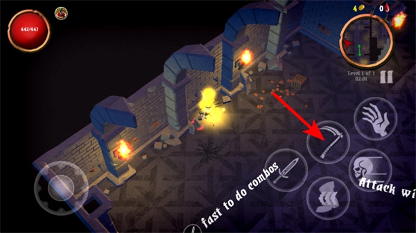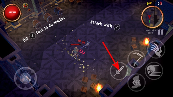 当遭遇敌人时,点击右侧的武器按钮即可发动攻击;若快速连续点击该按钮,还能触发连招,从而提高对敌人的伤害效率。
