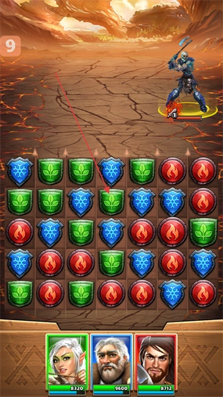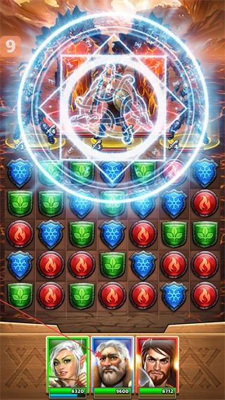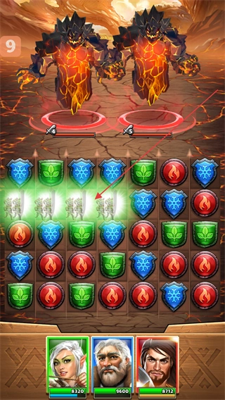 消除对应颜色的徽章,下方英雄就能积累能量,点击英雄即可释放技能发起攻击。