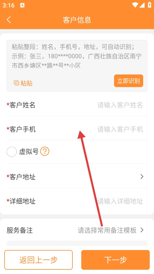 在【客户信息】页面,把【客户姓名】【客户手机】这些必填信息填好后,点击【下一步】就能走完下单流程了。