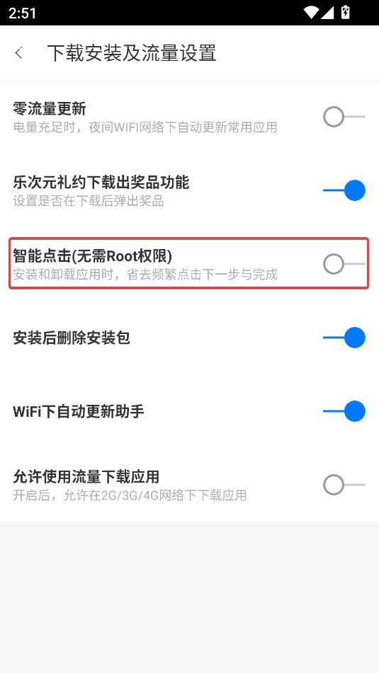 找到智能点击, 开启后就可以自动安装了