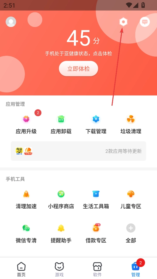 支持软件的安装、升级与卸载操作,能够自动清理多余的缓存数据,还可智能检测权限方面存在的风险。