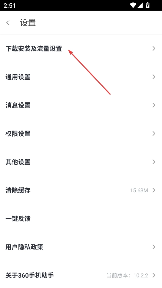 找到安装及流量设置,点击进入
