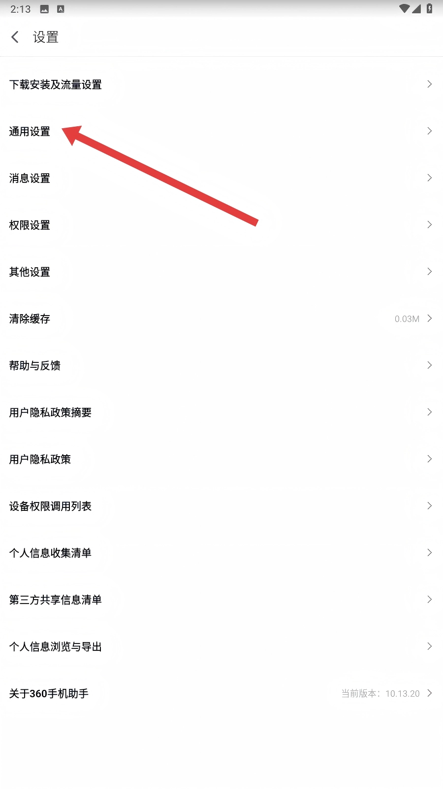 在设置页面中,点击【通用设置】选项,即可找到与缓存清理相关的功能入口。
