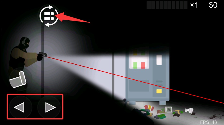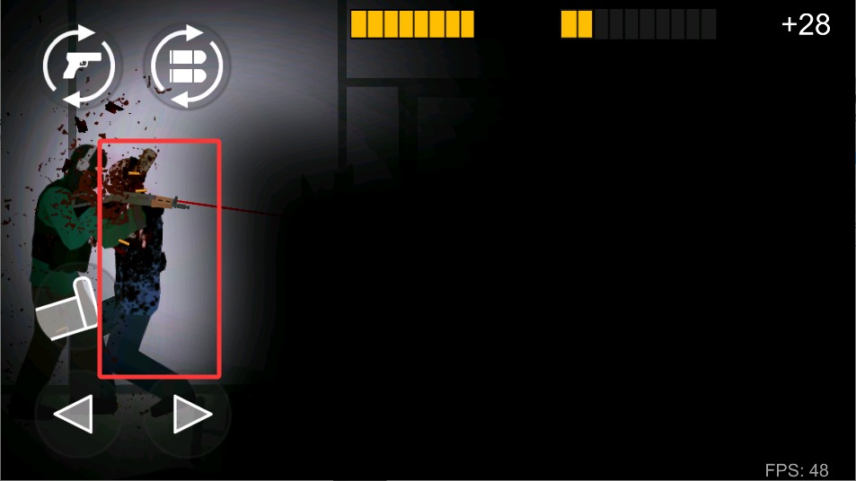 3、左手划拉屏幕让人物跑位躲僵尸,右手随时点换弹,子弹打空就尴尬了,保持弹匣充足才能持续输出。
