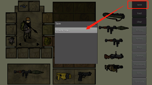 4、diy角色完成后,我们滑动之最上方“save”点击其中的“create new”可快速保存当前设置