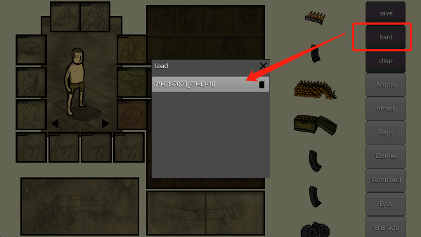 5、打开下图所示的“加载”选项,选择刚才保存的存档即可快速生成搭配