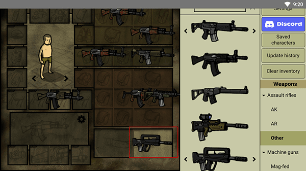 游戏中武器和装备的型号和外观都按照现实中设定,大部分道具还附加了重量。指南针、打火机、电池,甚至土质IED等上百种道具装备给了玩家非常多的搭配选项,玩家可以把自己的人物搭配到事无巨细,就算到现在,也只有极少数的军事题材大作能做到这点。