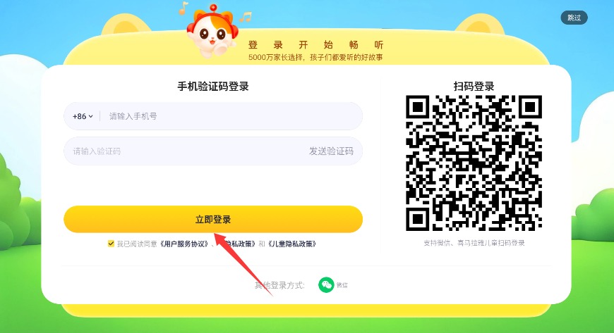 3、输入手机号获取验证码,填写验证信息并勾选协议后点击确认完成登录。