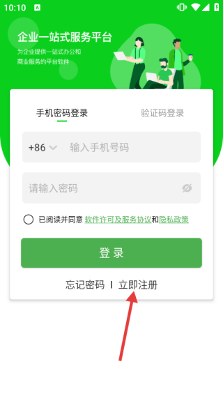 2、在企业服务平台的登录页面,如果需要注册,请点击【立即注册】以跳转到注册界面。