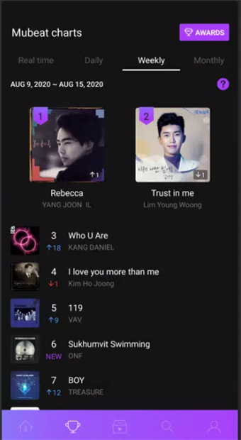 打榜应援与数据支持功能:打榜系统,粉丝可通过完成任务获取“爱心”道具,为偶像投票助力;打榜数据直接对接韩国主流音乐节目的排名体系,粉丝的投票将直接影响偶像的舞台排名和获奖机会,增强应援的实际意义。