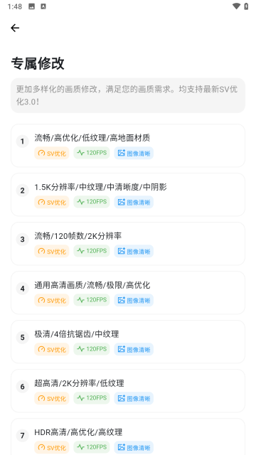 部分机型修改画质后不显示90/120帧率,但是仍然可以使用90/120。