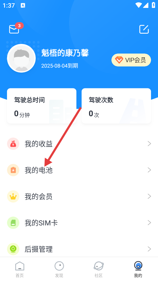 2、个人中心页面点击【我的电池】,进入电池管理页面。