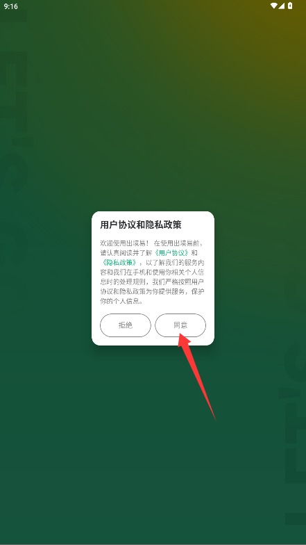 1首次使用时,请先阅读平台的服务条款和隐私政策,确认无误后勾选同意按钮以进入应用。