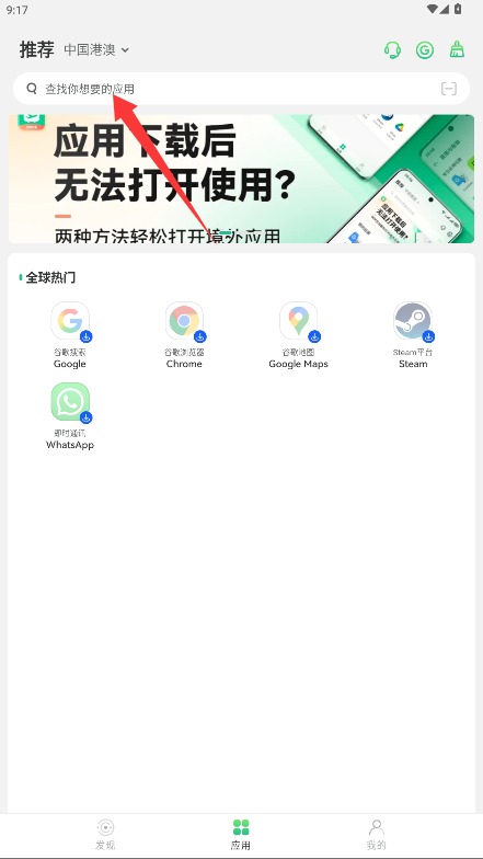 2、查找应用时进入搜索界面栏,输入应用名称或功能关键词汇,智能推荐相关海外应用解决方案列表。