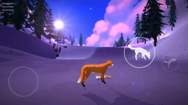 2、操作非常简单,左侧隐形轮盘移动狐狸,右侧可以互动、跳跃、移动镜头,点击继续;