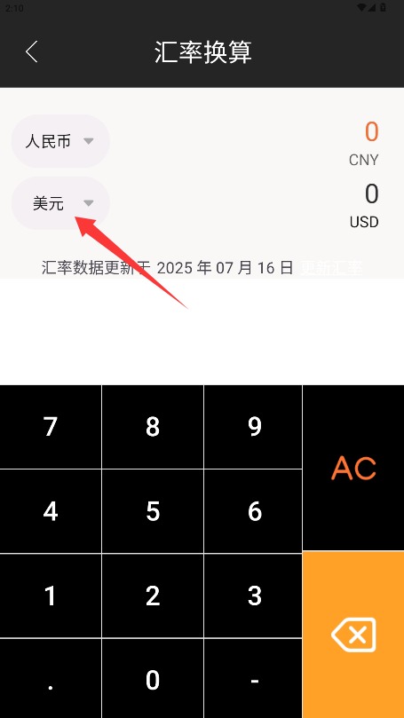 4、进入汇率换算功能后,选择需要转换的货币种类,输入金额即可实时计算兑换结果。