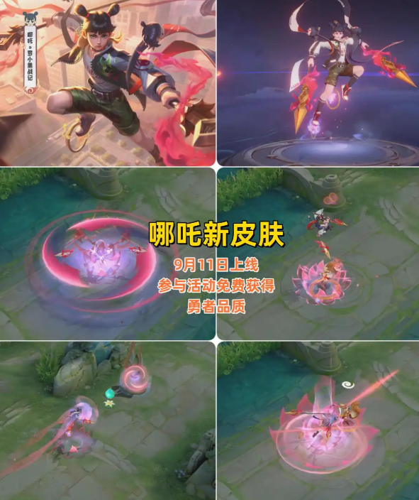 *【哪吒-罗小黑战记】为勇者品质皮肤,标签为“罗小黑战记”,2025年9月11日更新后陆续开启~9月23日23:59参与游戏内【送联动皮肤】活动免费获取。拥有【哪吒-罗小黑战记】皮肤即可免费解锁联动主题语音包。此外,活动结束后,皮肤将开启皮肤碎片限时兑换,并在兑换期结束后上架商城限时直售,详情请关注后续官网公告。