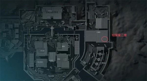 通过主楼入口进入组装室,随后上楼至二楼可见密码门