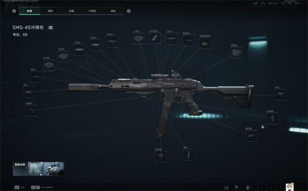这套 SMG-45 更偏向“稳扎稳打”的泛用型冲锋枪。相比传统冲锋枪,它弱化了射程短、容错低的问题,同时保留了机动性和弹匣优势,在巷战、据点推进和中距离对枪中都有稳定表现。