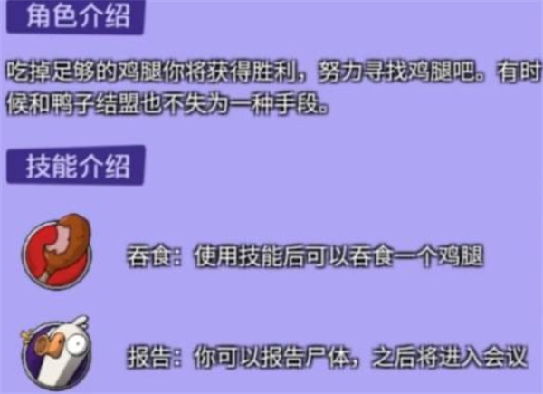 鸽子的胜利条件是成功传染足够数量的玩家,属于潜行型中立角色。