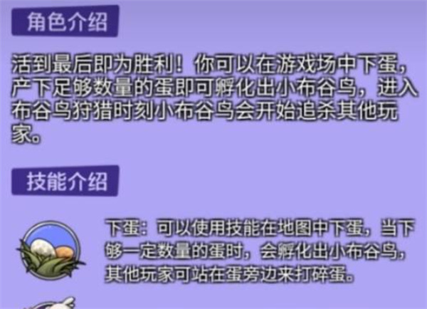 呆呆鸟属于典型的娱乐类中立角色,它的胜利条件十分简单,只要被大家投票淘汰就能赢得胜利。