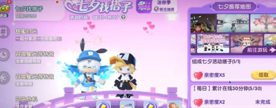 七夕将至,《迷你世界》摇身一变,成为充满爱意的奇妙天地。在这个特别的节日里,游戏推出诸多有趣活动,涵盖社交、冒险、装扮等多个维度。从独特的 “七夕找搭子” 玩法,到全新上线的创意体验,再到琳琅满目的新外观,每一项都值得期待。接下来,为你全面汇总迷你世界七夕活动,让你尽情畅享节日欢乐 。