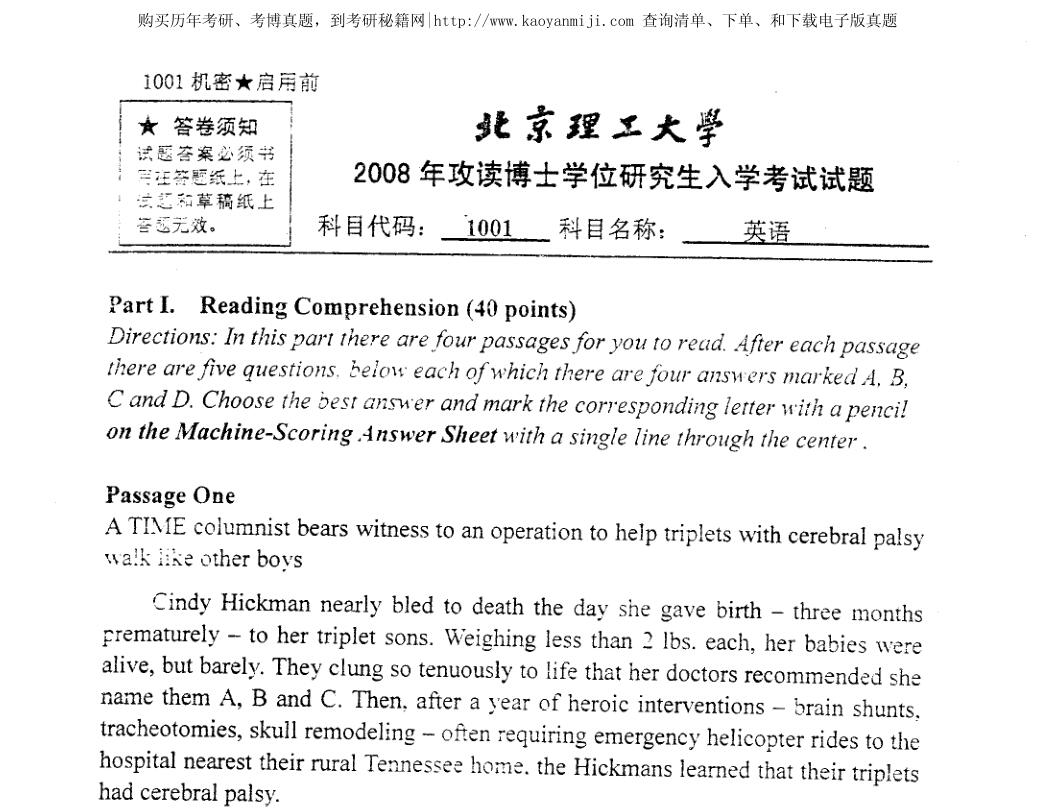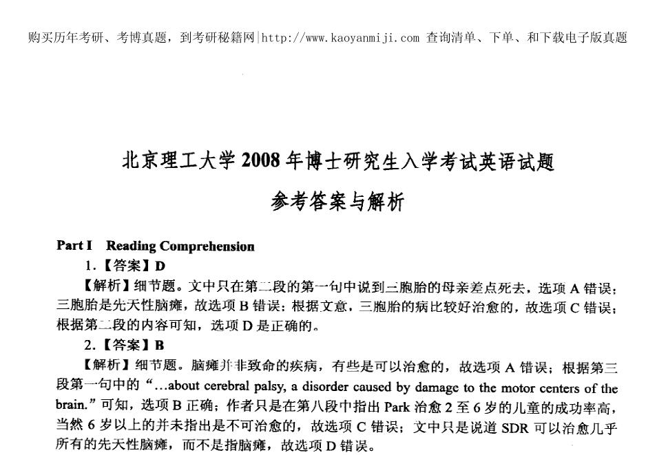 考研秘籍网提供的全国高校历年考博真题电子扫描版样张展示: