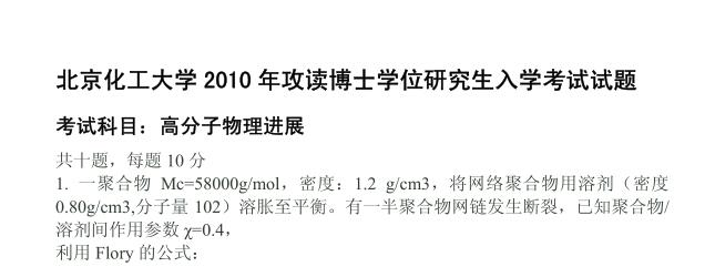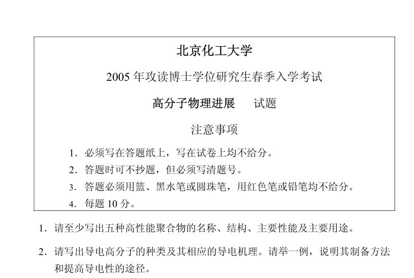 说明:本站提供的北京化工大学考博真题来源于北京化工大学研究生院,除标注有“回忆版”字样的试题外,其余均为原版扫描,权威可靠;回忆版试题由当年参加硕士研究生入学考试考生回忆,内容完整。