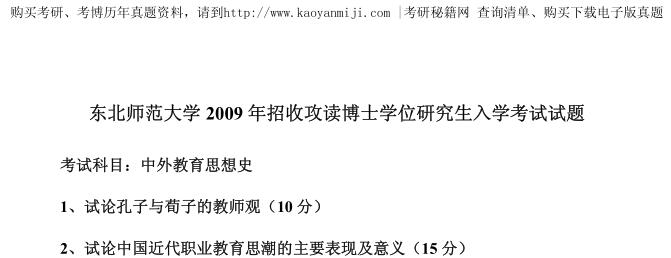 说明:本站提供的东北师范大学考博真题来源于东北师范大学研究生院,除标注有“回忆版”字样的试题外,其余均为原版扫描,权威可靠;回忆版试题由当年参加硕士研究生入学考试考生回忆,内容完整。