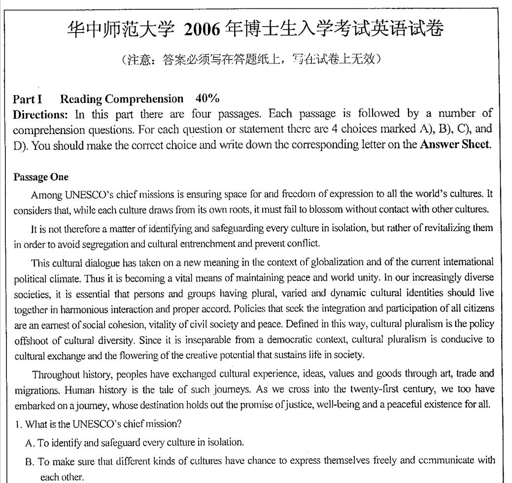 《湖北省考博英语联考试卷》