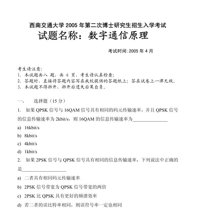 2005(第二次)(共6页 缺3、4、5、6页)
