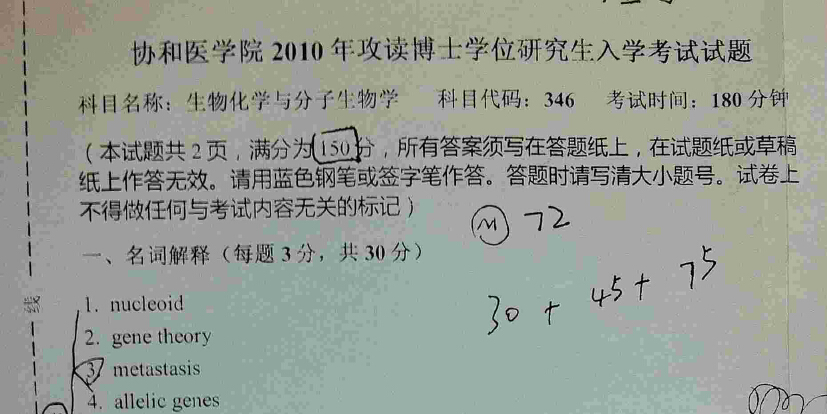 说明:本站提供的北京协和医学院考博真题来源于北京协和医学院研究生院,除标注有“回忆版”字样的试题外,其余均为原版扫描,权威可靠;回忆版试题由当年参加硕士研究生入学考试考生回忆,内容完整。