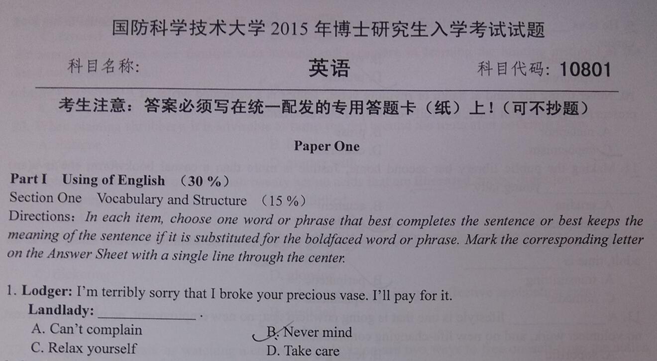 库存情况(试题年份 例:2015 指2015年真题 2015答案