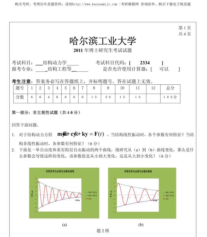说明:本站提供的哈尔滨工业大学考博真题来源于哈尔滨工业大学研究生院,除标注有“回忆版”字样的试题外,其余均为原版扫描,权威可靠;回忆版试题由当年参加硕士研究生入学考试考生回忆,内容完整。