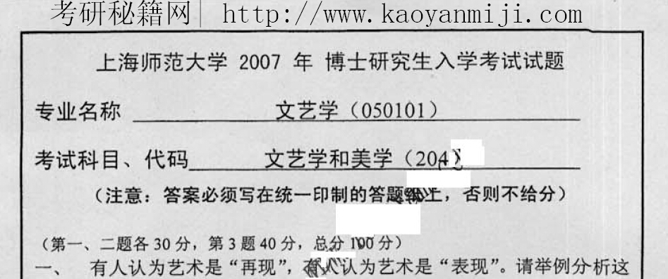 说明:本站提供的上海师范大学考博真题来源于上海师范大学研究生院,除标注有“回忆版”字样的试题外,其余均为原版扫描,权威可靠;回忆版试题由当年参加硕士研究生入学考试考生回忆,内容完整。