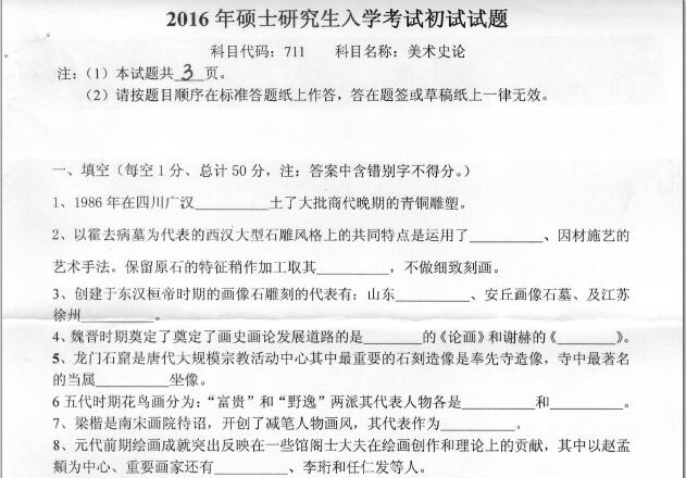 2016年燕山大学711美术史论考研真题