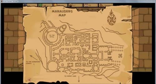 3、左上角有作弊按钮,作弊有了地图可以四处探索,一个地方可以买衣服,一个地方可以买各种道具、书籍等,打瞌睡到晚上可以请斯内普喝壁橱里的酒来改善关系,另外赫敏的各项属性条等等都解锁了,不过失去了游戏的乐趣,自行选择