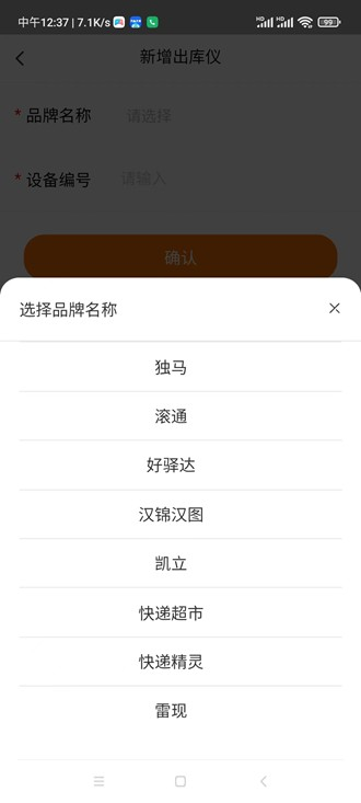 3、选择出库仪品牌,输入设备编号(建议使用手机号后 8 位)。