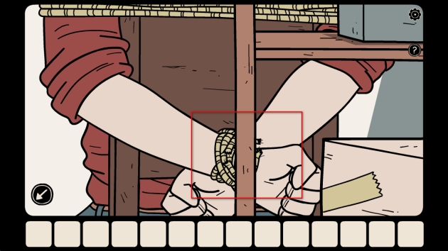 1、发现角色被绳索捆绑时,要在场景内寻找工具,例如通过与周围物品互动,找到可割断绳索的道具,以此解开束缚,推动流程向前。