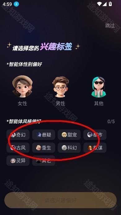 2、挑选兴趣标签进入主页面