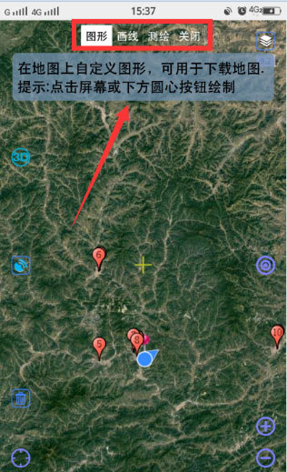 6、不区分图形框选、画线测距和测绘,工作完成后按住屏幕可以保存工作;