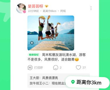 2.其次,连信基于地理位置的特性,附近的人距离是实时更新的。