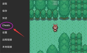 3、进入Cheats界面,包括不遇敌、复活草、神奇糖果、直接胜利等已解锁的金手指功能可以选择使用,我们还可以自定义金手指代码,选择右上角【+号】图标,