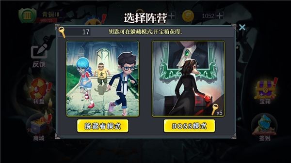1、然后进入恐怖躲猫猫游戏,在游戏中提供了两种阵营模式供玩家选择,这里选择的是躲藏者模式;