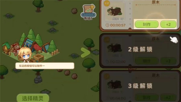 4、拥有了伐木场,就需要选择精灵快速制作原木。